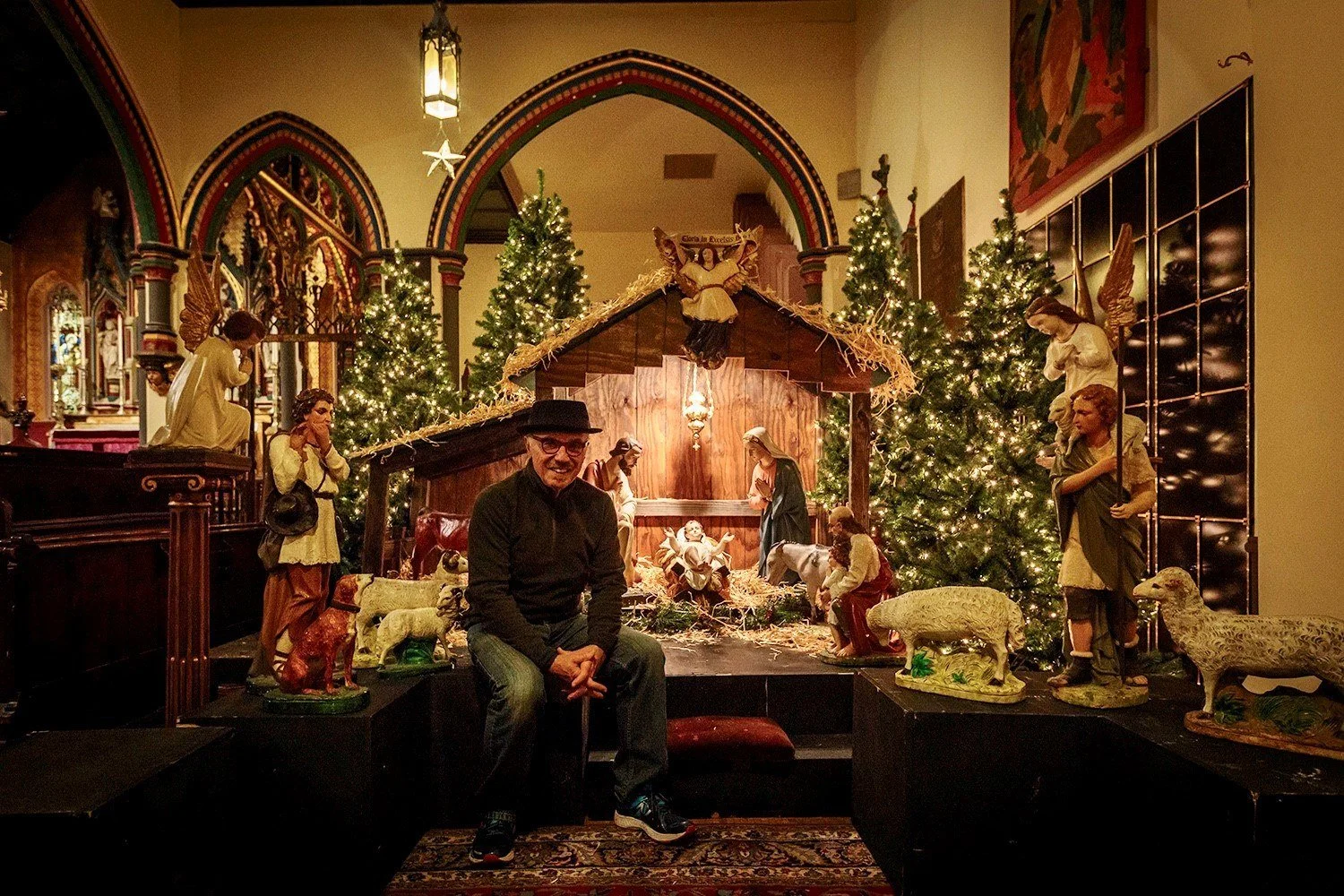 When I first saw Transfiguration's collection of nativity figures (many over a hundred years old) sprawled about the sanctuary, I felt something missing. It took me two years before suggesting moving the figures and display them collectively in a tableau to the side of the sanctuary. So with my two decorating cohorts, Maryann Wlock and Maurice Antaya, we created a version of the nativity with a background of Christmas trees. As beautiful as the new scene was received, something was still not quite right. What was missing was the building - a manger.